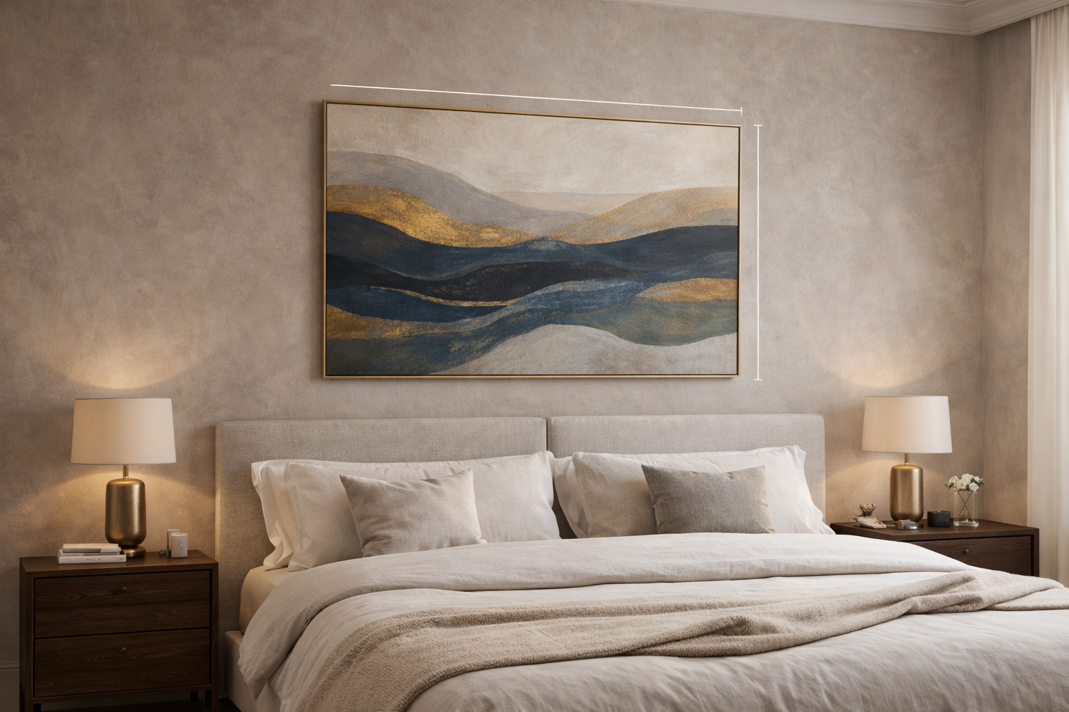 So, what size art for over a bed works best? Designers often follow a simple guideline: aim for a piece that is about two-thirds the width of the furniture below it. A tiny picture gets lost, while something too wide feels top-heavy. This fraction helps large scale art above a headboard feel perfectly balanced.